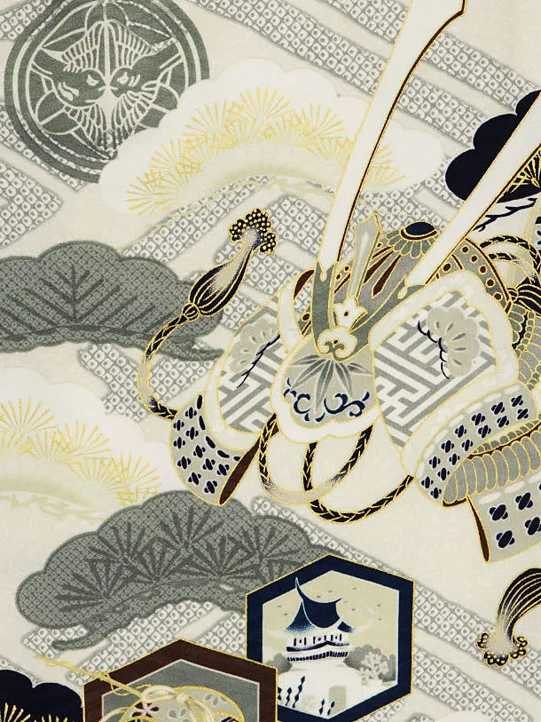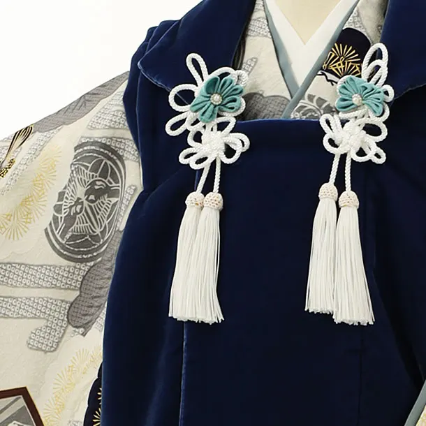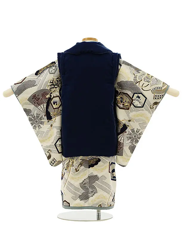 七五三レンタル(3歳男児被布)2840華徒然ベルベット紺xアイボリー松兜