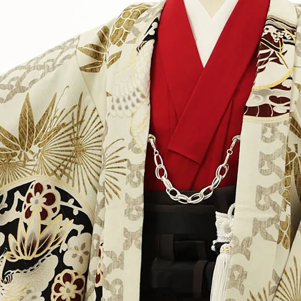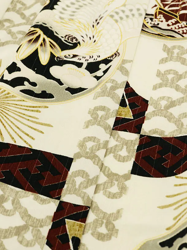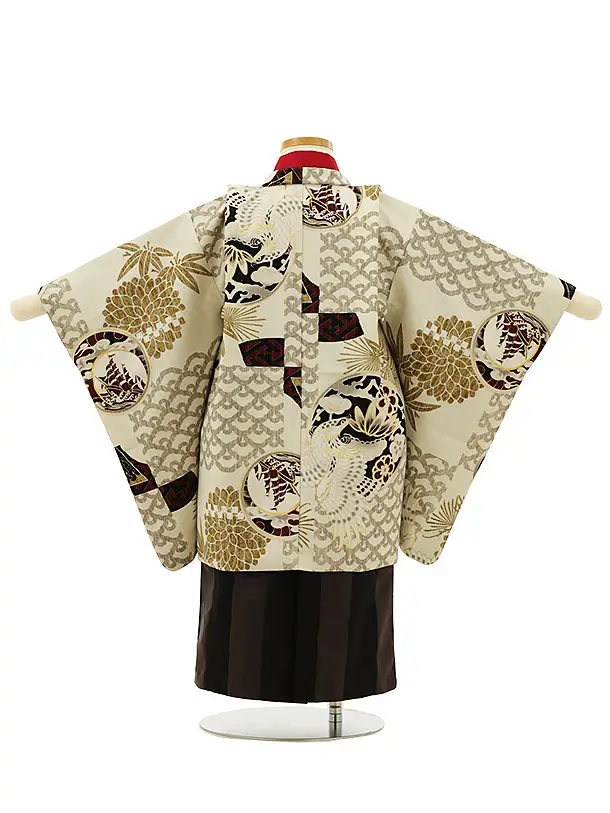 七五三(3歳男袴)2842JAPANSTYLEベージュ地青海波丸紋鷹x黒袴