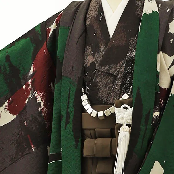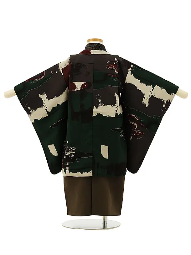 七五三(3歳男袴)2843モダンアンテナグリーンこげ茶龍虎×カーキ色袴