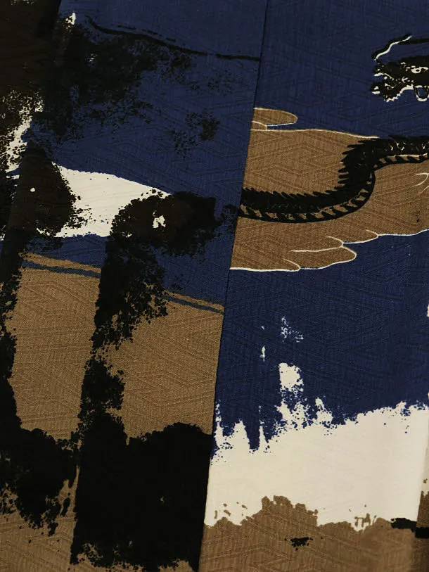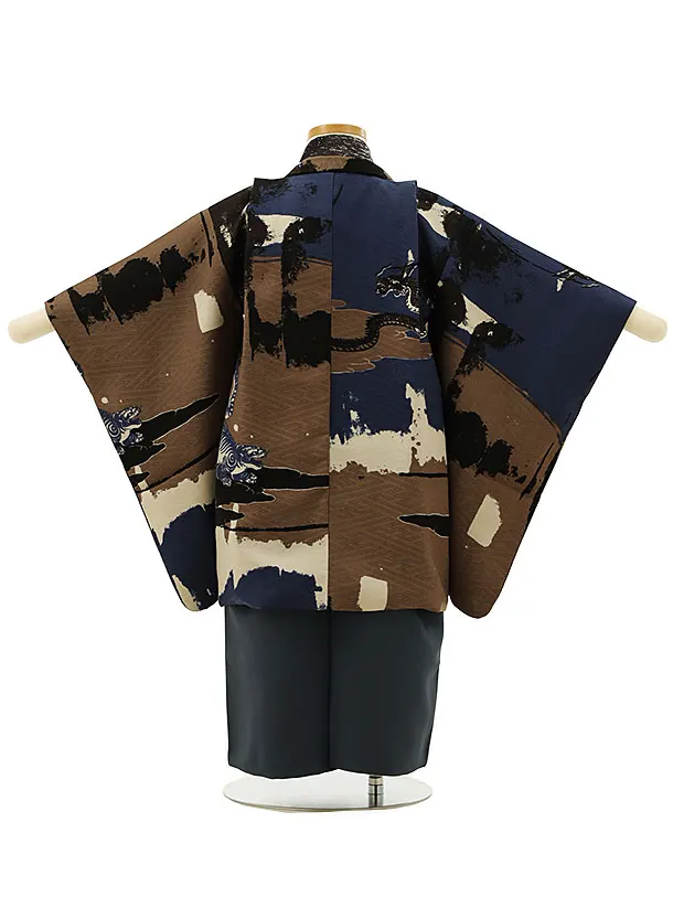 七五三(3歳男袴)2844モダンアンテナ紺モカ茶龍虎×ブルーグレー袴