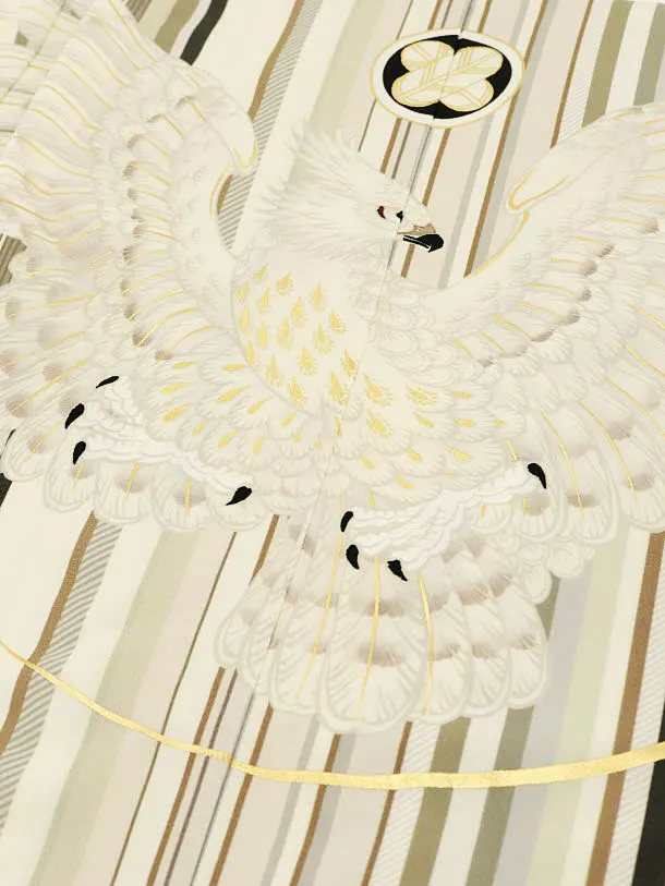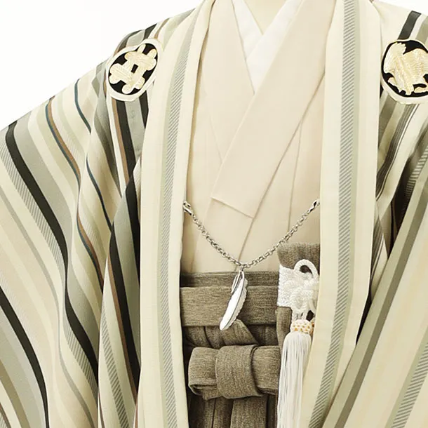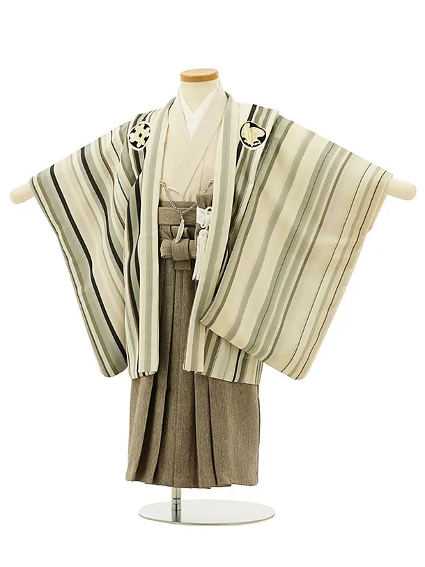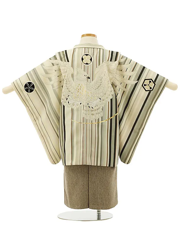 七五三(3歳男袴)2847シュセットアイボリーストライプ白鷹×ベージュ袴