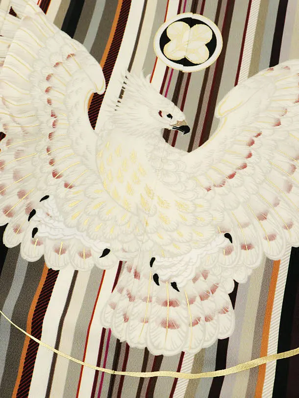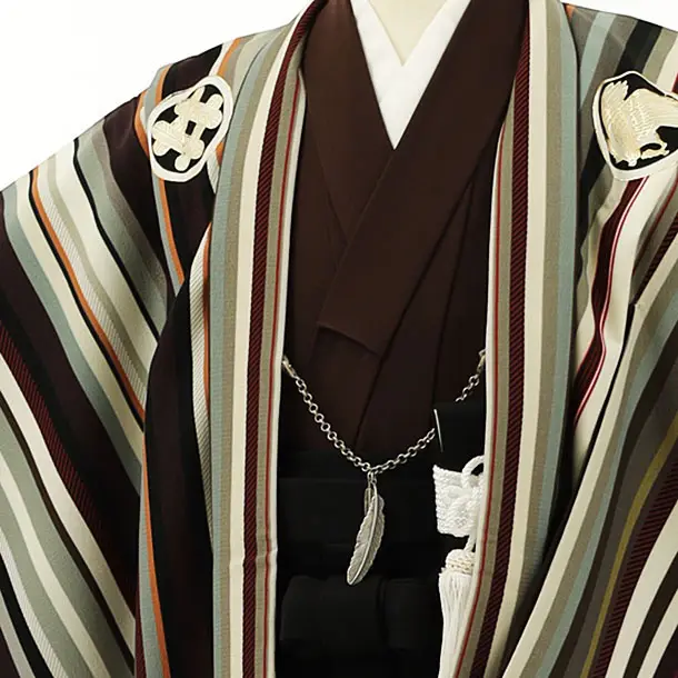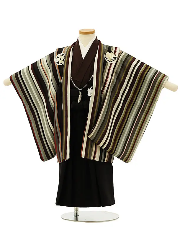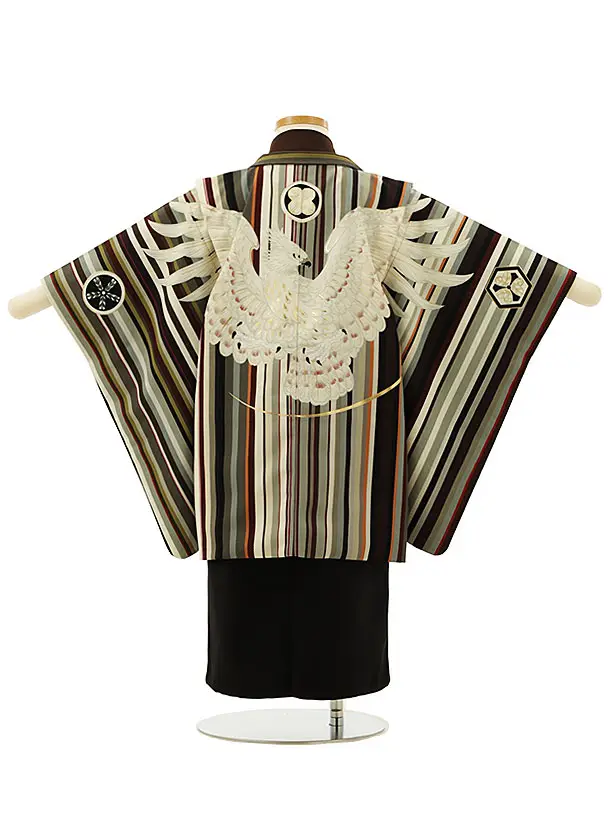 七五三(3歳男袴)2848シュセットアイボリーストライプ白鷹×ベージュ袴