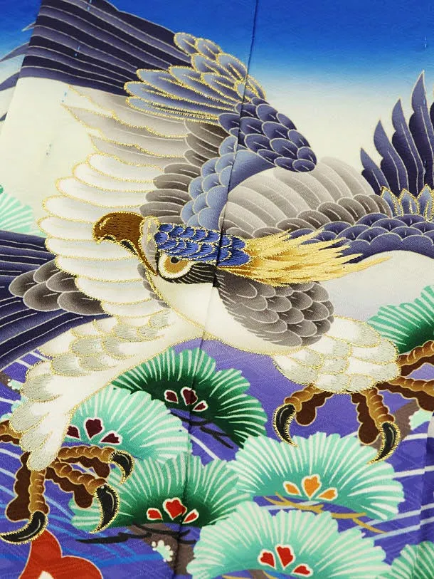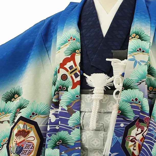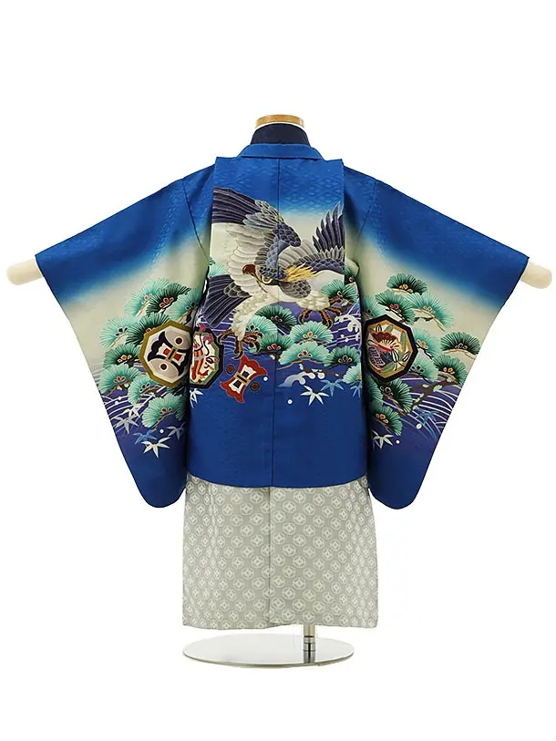 かんたん七五三レンタル(3歳男袴)2858 ブルー地松に八角宝鷹×ブルー袴