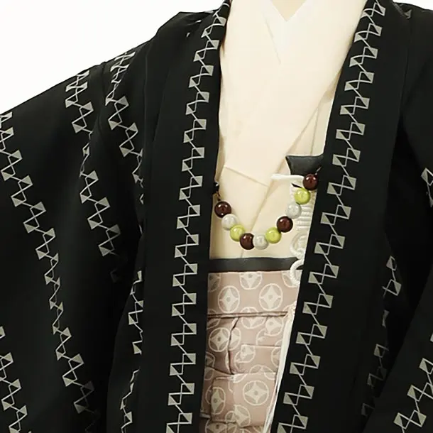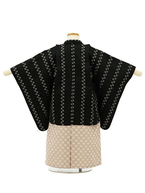 かんたん七五三レンタル(3歳男袴)2860 黒変わり縞×ピンクベージュ袴