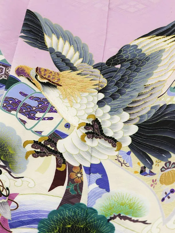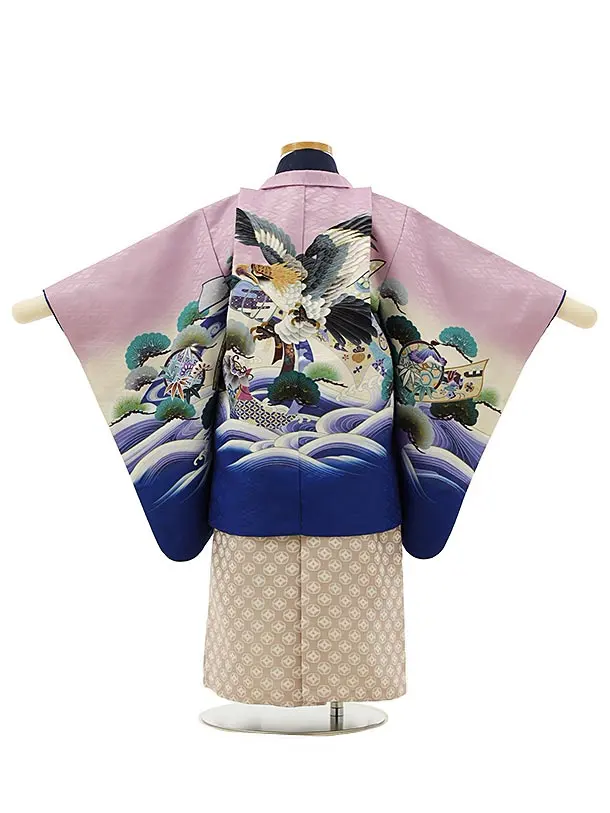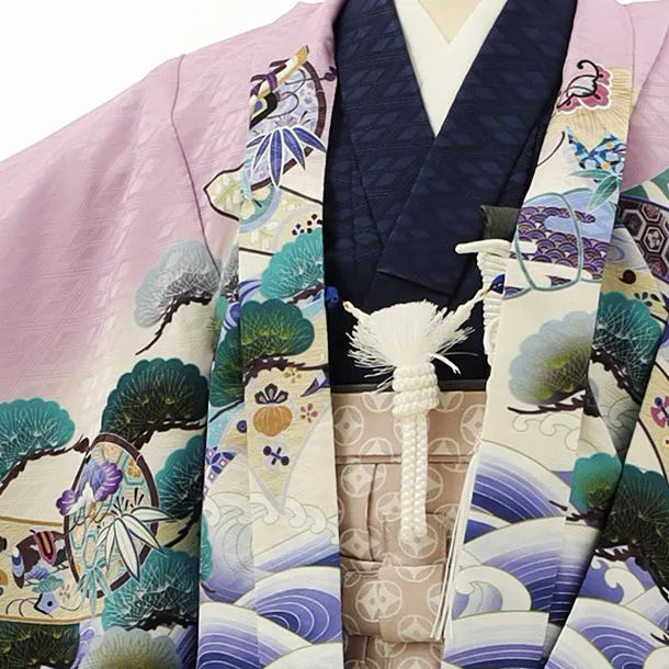 かんたん七五三(3歳男袴)2862 薄パープル波に束ね熨斗鷹×ピンクベージュ袴