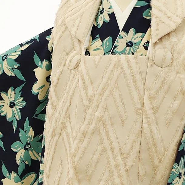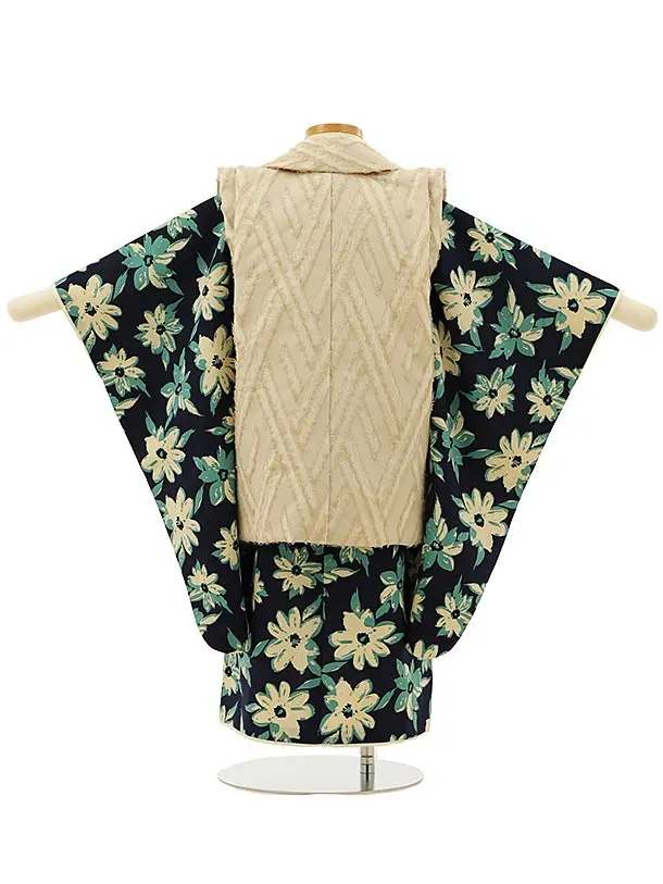 七五三レンタル(3歳男児被布)2876花わらべ ベージュ×紺フラワー