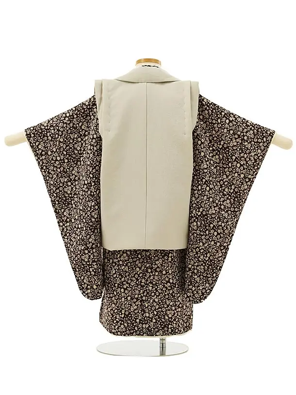 七五三レンタル(3歳男児被布)2878花わらべ 薄グレー×ブラウン小花
