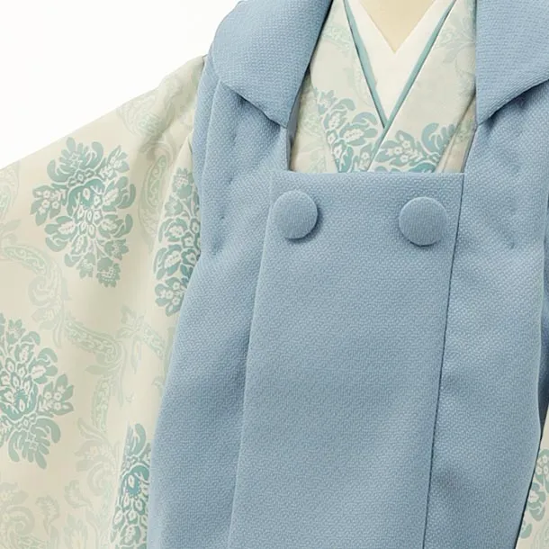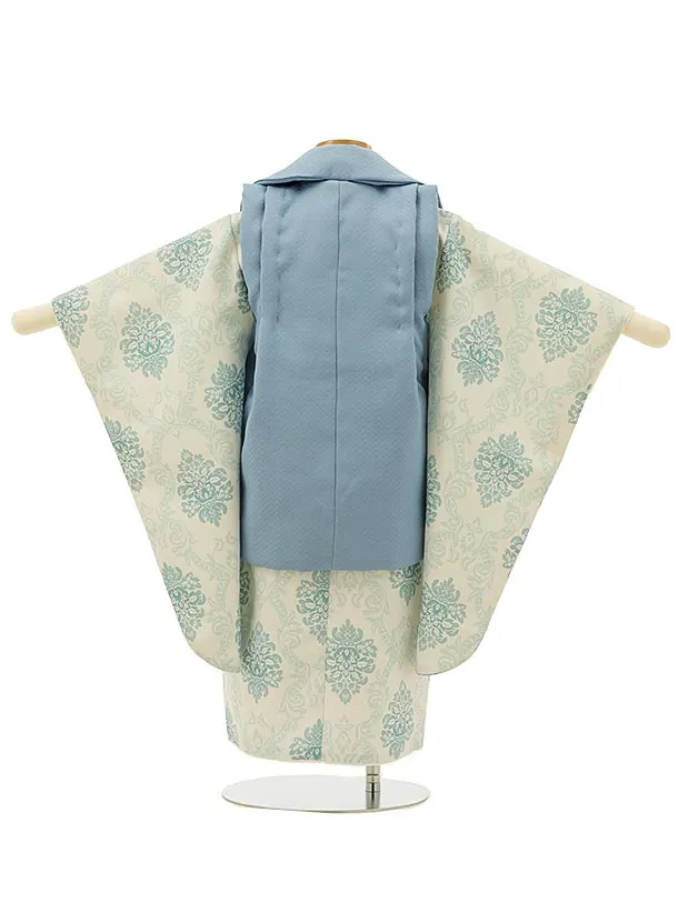 七五三レンタル(3歳男児被布)2885ブルー×白地オリエンタル