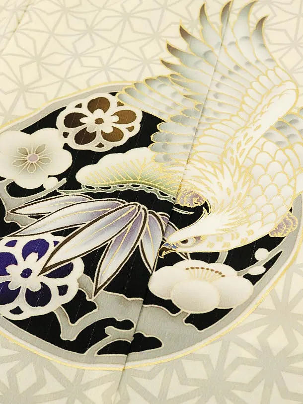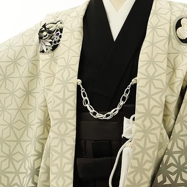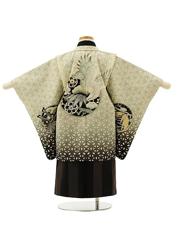 七五三(3歳男袴)2886JAPANSTYLEベージュ組子模様に鷹x黒茶袴
