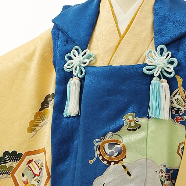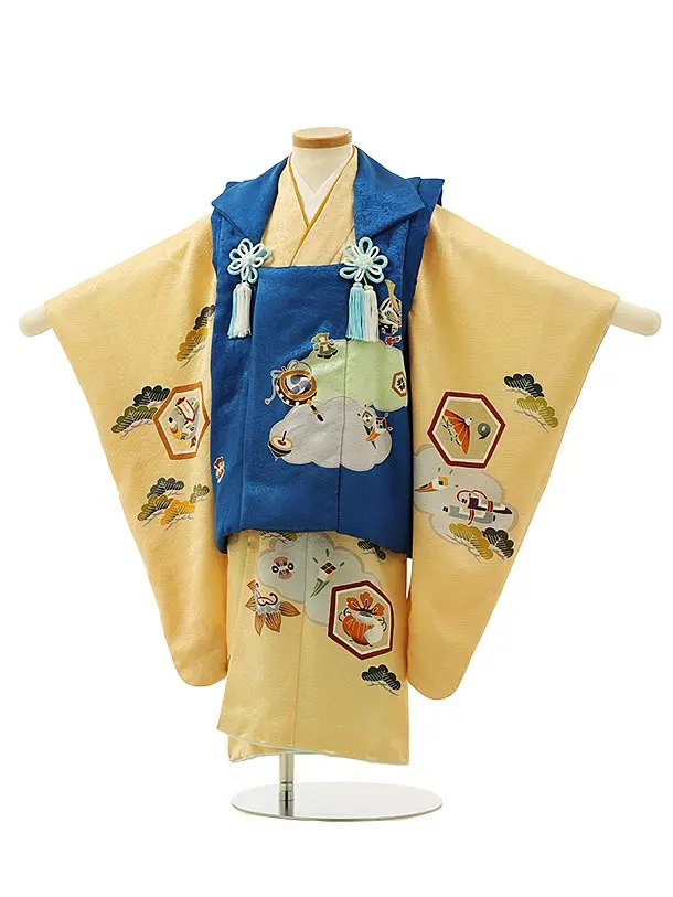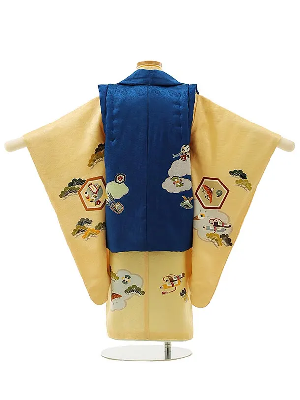 七五三レンタル(3歳男児被布)2888【正絹】ブルーxたまご色吉祥文様