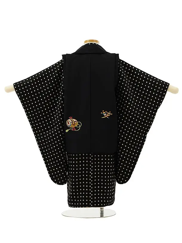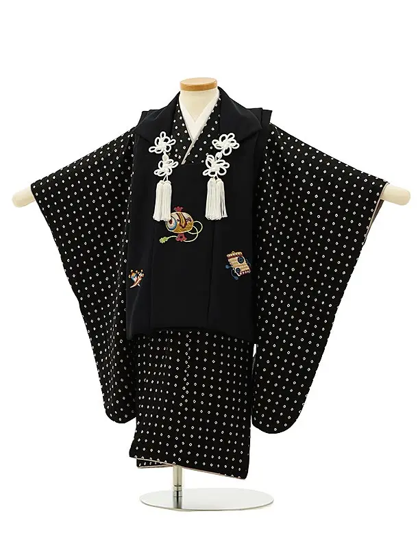 七五三レンタル(3歳男児被布)2899【正絹】黒刺繍小槌x黒