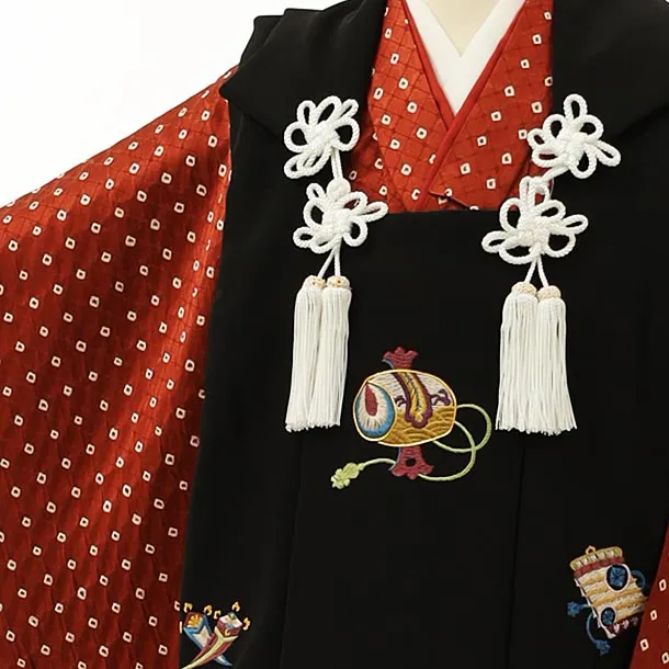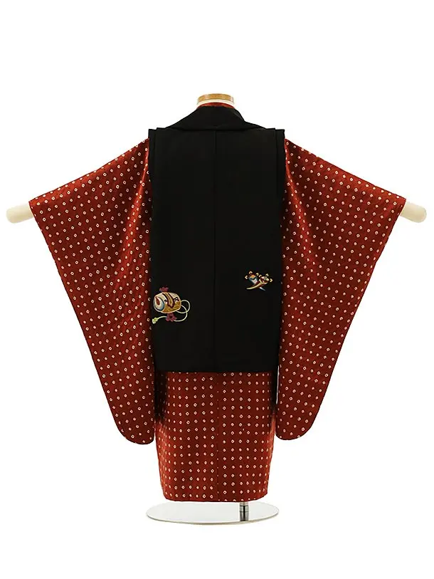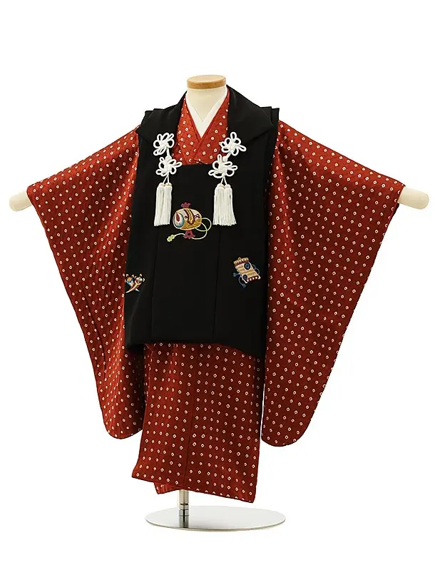 七五三レンタル(3歳男児被布)2900【正絹】黒刺繍小槌x赤茶色