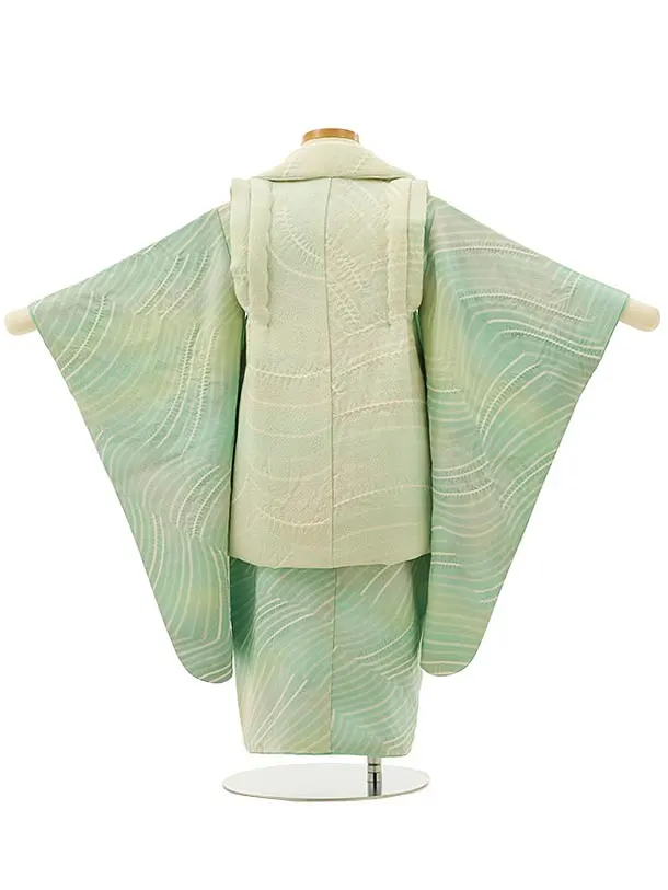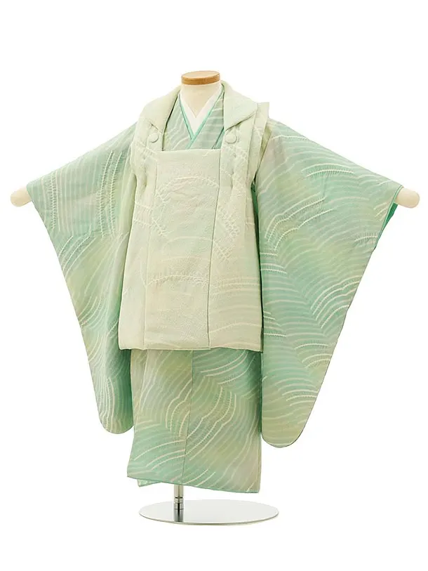 七五三レンタル(3歳男児被布)2904【正絹】おぼろ染淡色xヒワ色ぼかし