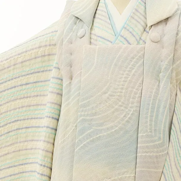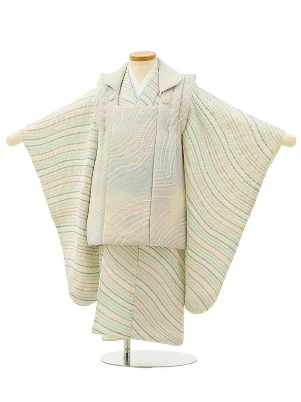 七五三レンタル(3歳男児被布)2905【正絹】おぼろ染虹色xクリーム流線