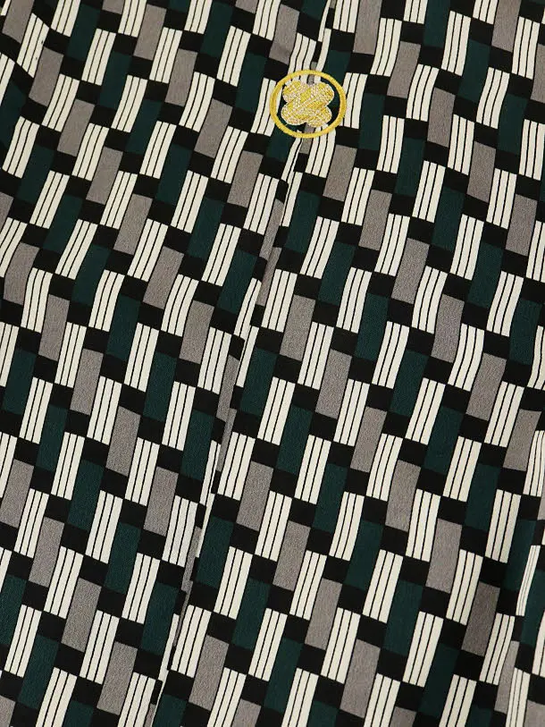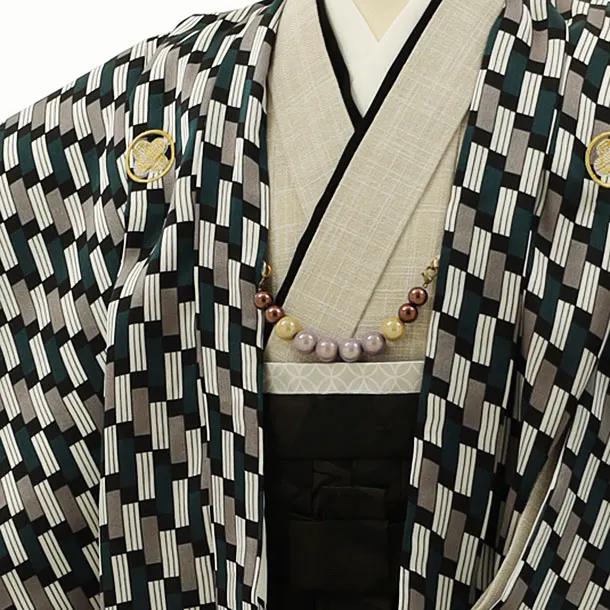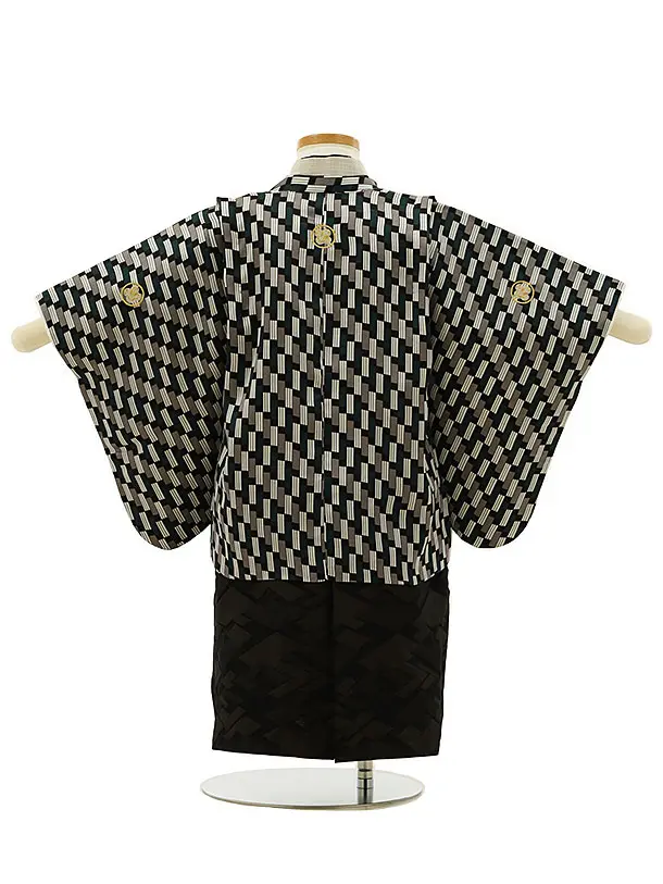 かんたん七五三(2歳男袴)2907黒グリーン変わり格子xモスグリーン袴