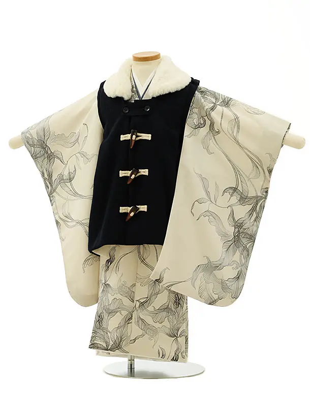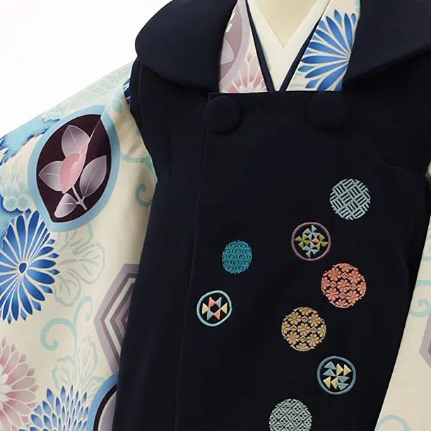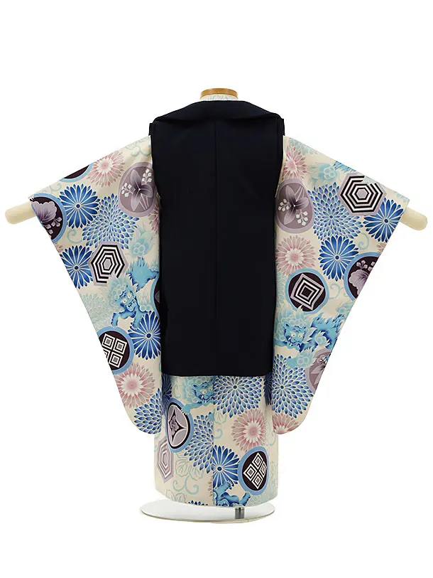 七五三レンタル(3歳男児被布)2910 紺刺繍丸x菊に獅子