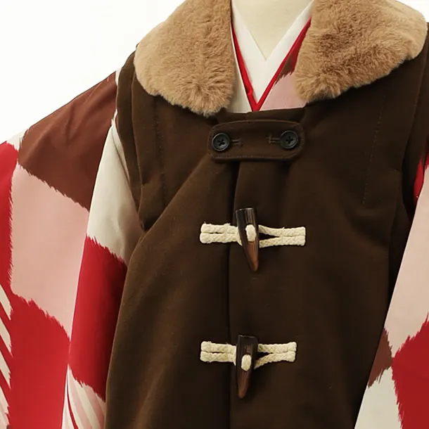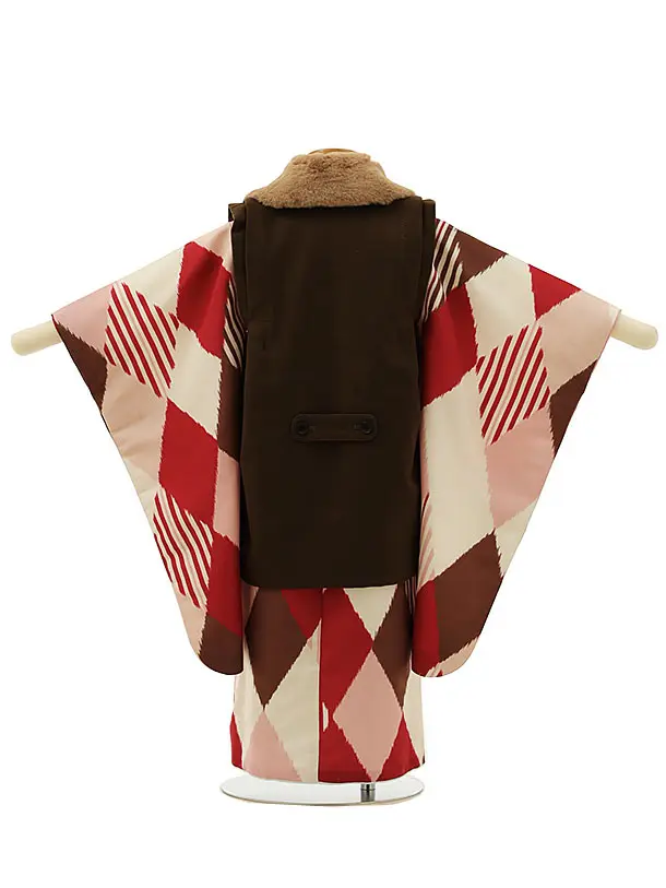 七五三レンタル(3歳男児被布)2911 ブラウンダッフル風xひし形赤