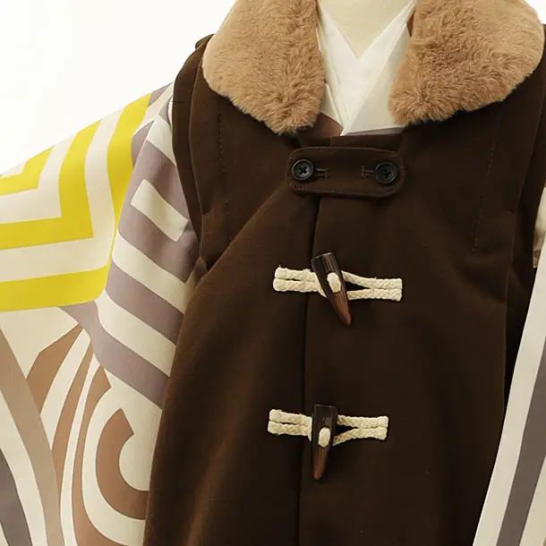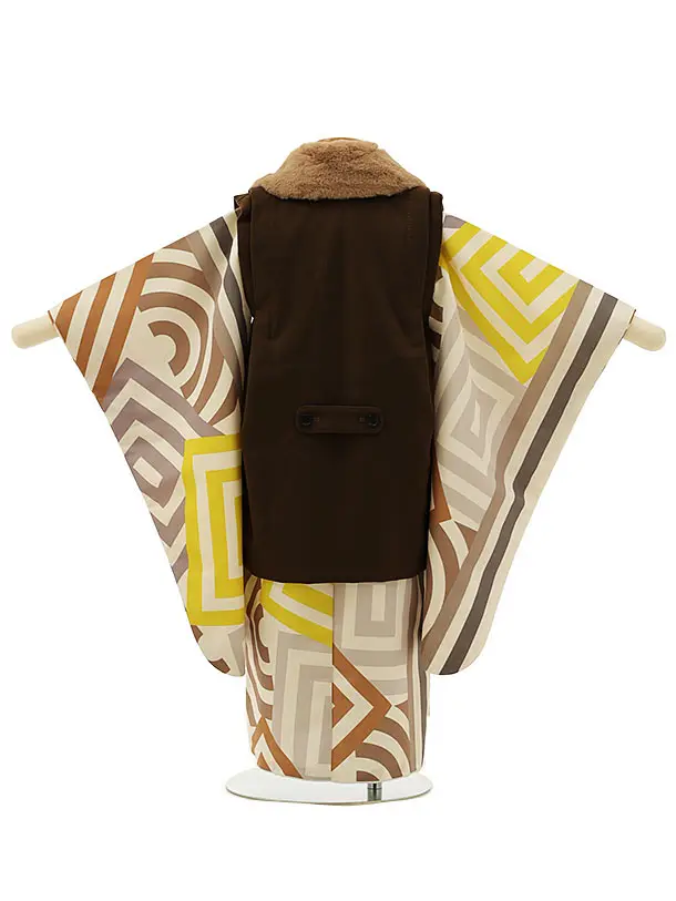 七五三レンタル(3歳男児被布)2914 ブラウンダッフル風x幾何学