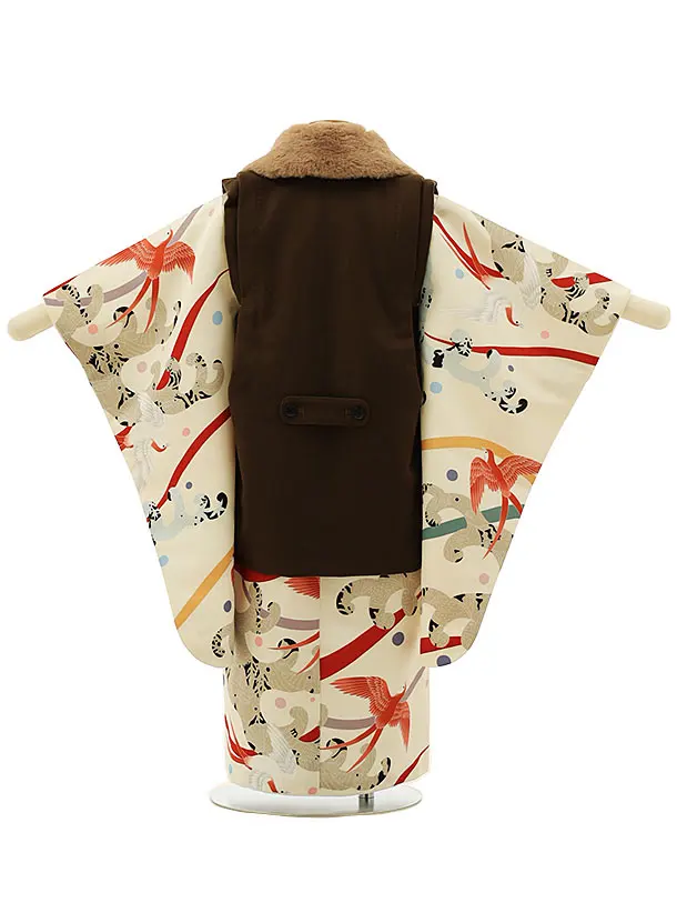 七五三レンタル(3歳男児被布)2917 ブラウンダッフル風x波つばめ