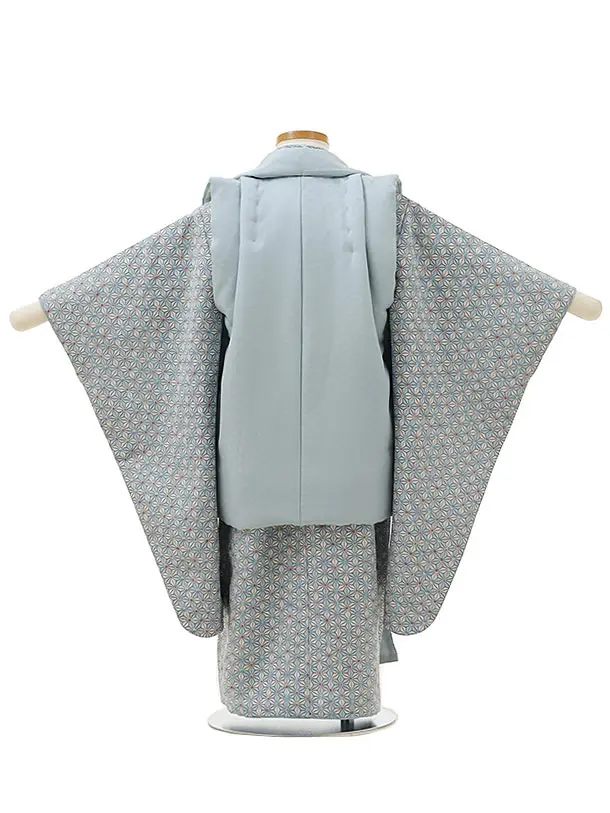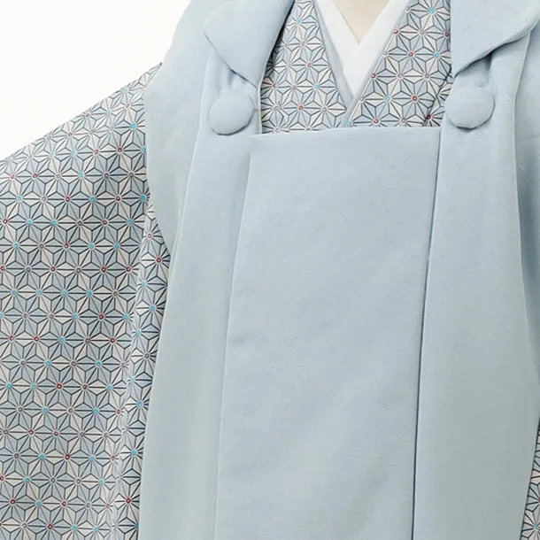 七五三(3歳男児被布)2931【正絹】ペールブルー×ペールブルー麻の葉