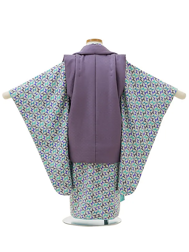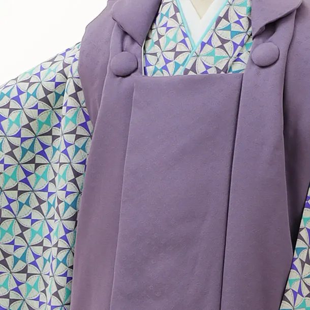七五三(3歳男児被布)2942【正絹】パープル×ブルーグリーン風車