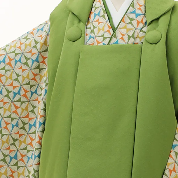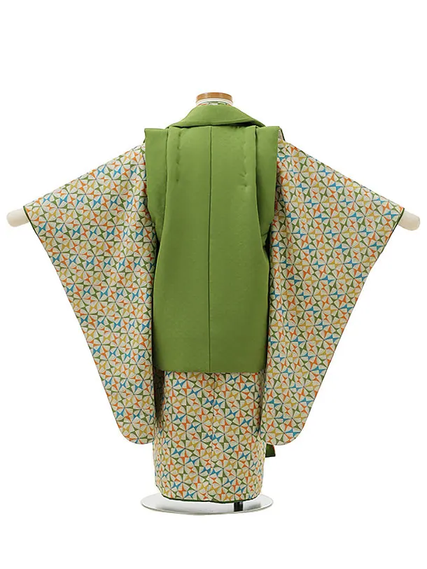 七五三(3歳男児被布)2943【正絹】抹茶グリーン×抹茶ブルー風車