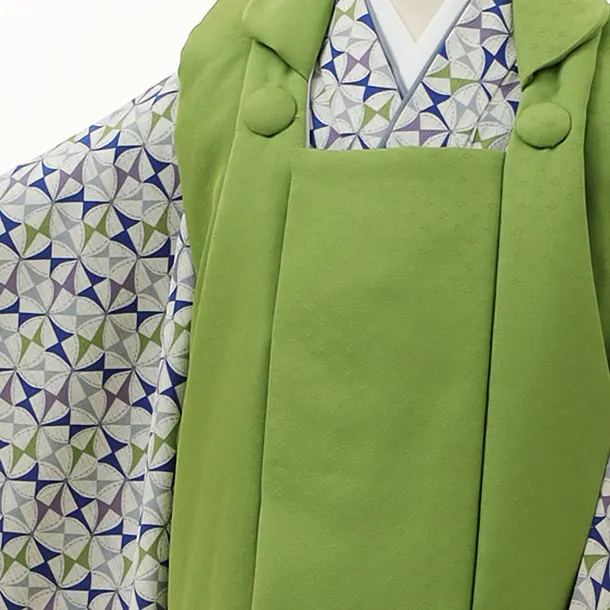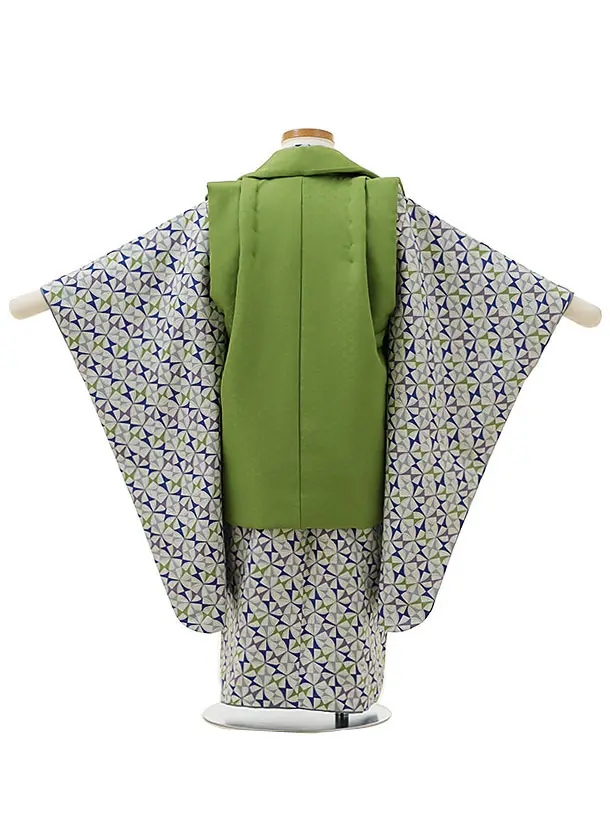 七五三(3歳男児被布)2945【正絹】抹茶グリーン×抹茶ネイビー風車