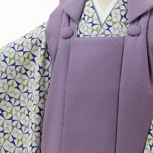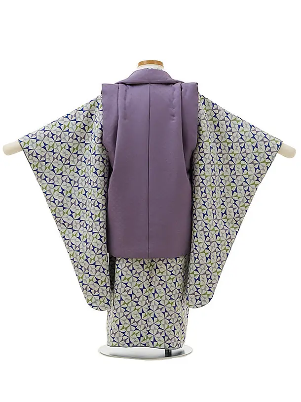 七五三(3歳男児被布)2946【正絹】パープル×抹茶ネイビー風車