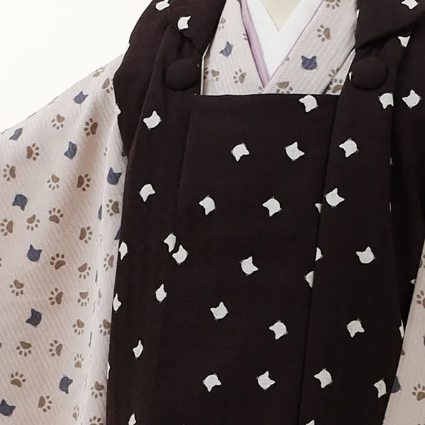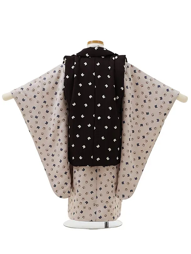 七五三(3歳男児被布)2951【正絹】こげ茶×パープルベージュ猫
