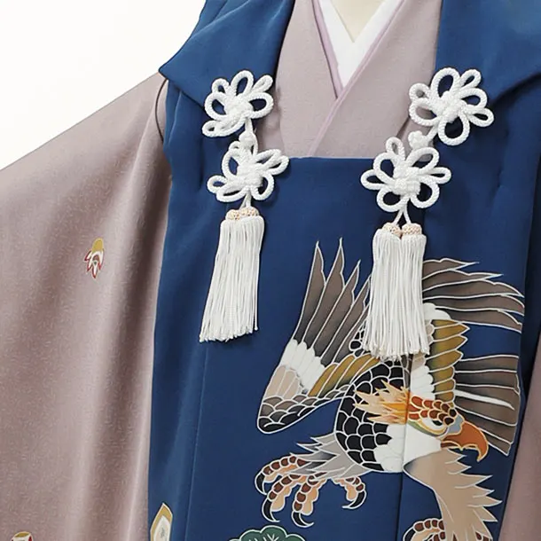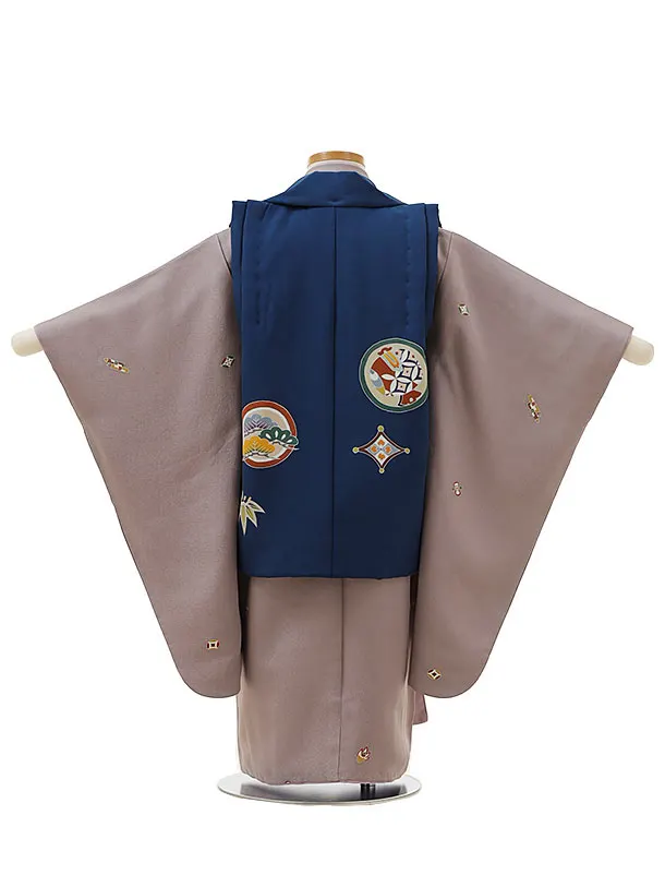 七五三(3歳男児被布)2953【正絹】ブルー松に鷹×パープル小紋