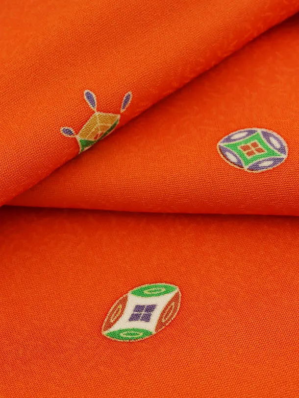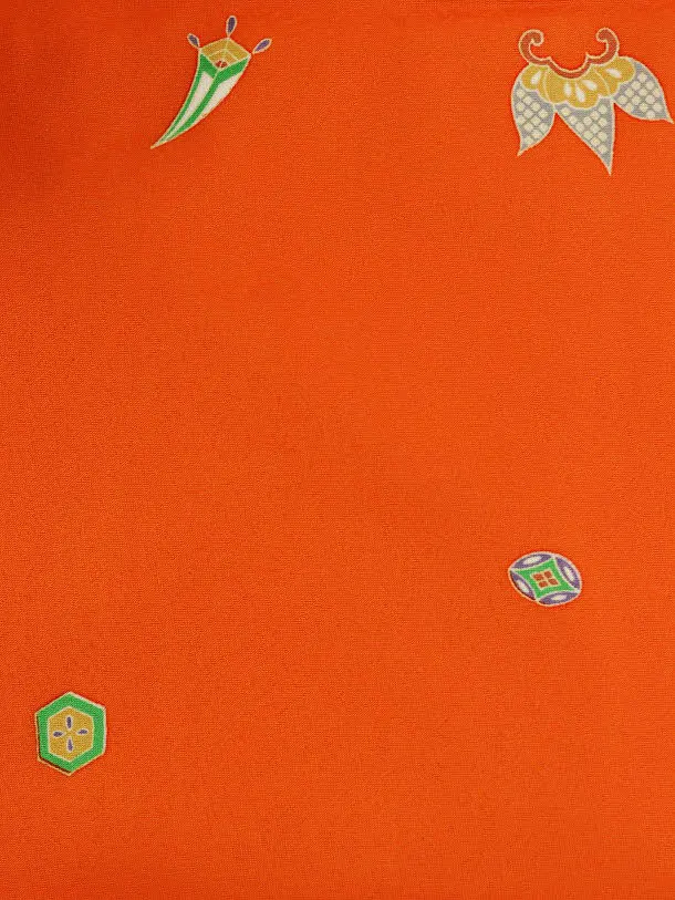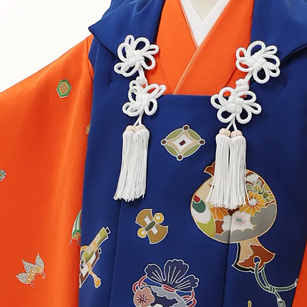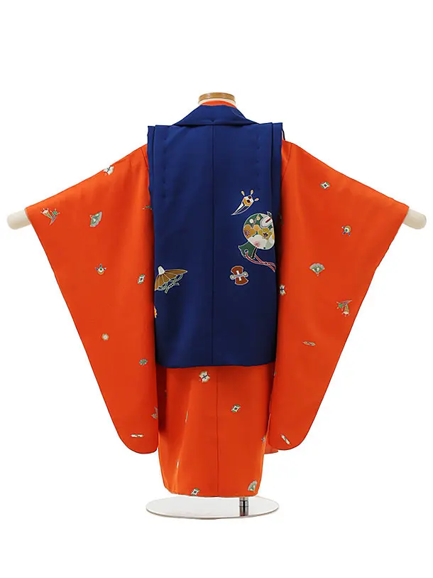 七五三(3歳男児被布)2954【正絹】ブルー小槌吉祥文様×オレンジ吉祥文様