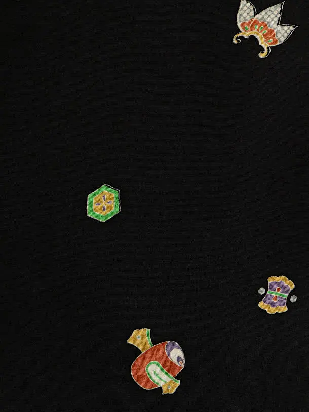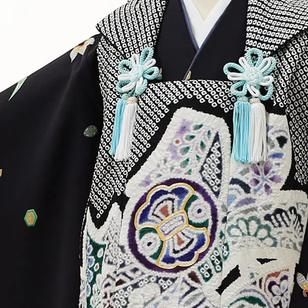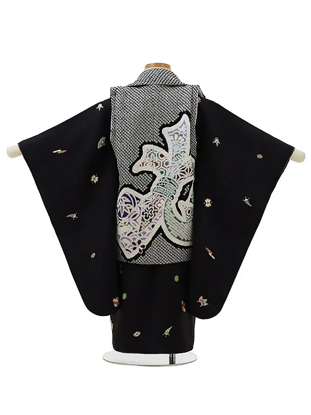 七五三(3歳男児被布)2955【正絹】黒絞り束ねのし×黒吉祥文様