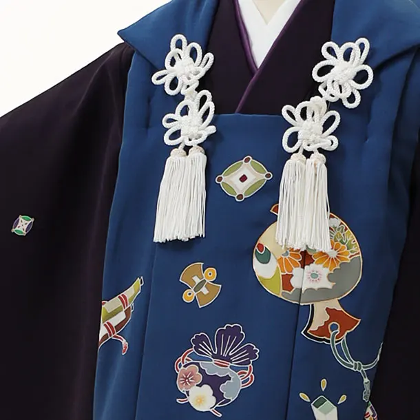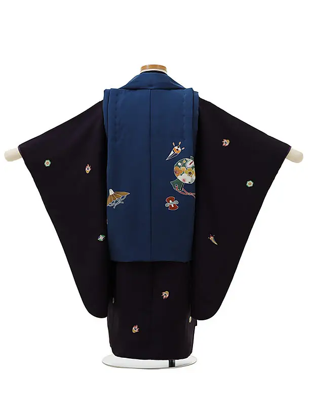 七五三(3歳男児被布)2957【正絹】ブルー小槌吉祥文様×濃パープル小紋