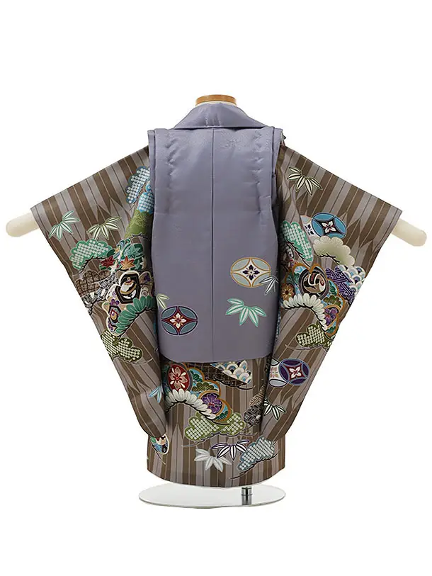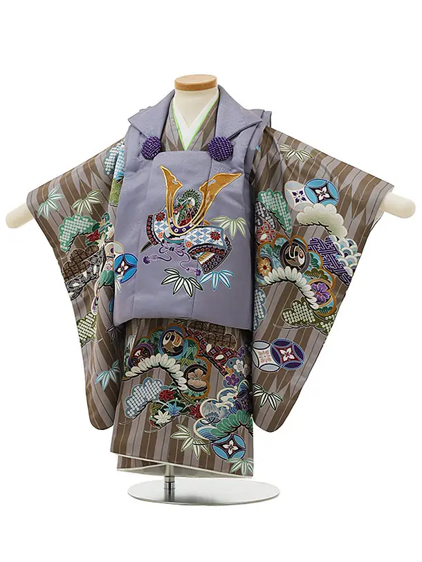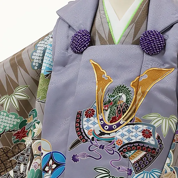 七五三レンタル(2歳男児被布)2969パープルグレー兜×金茶矢柄吉祥文様