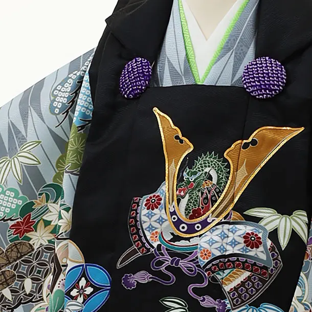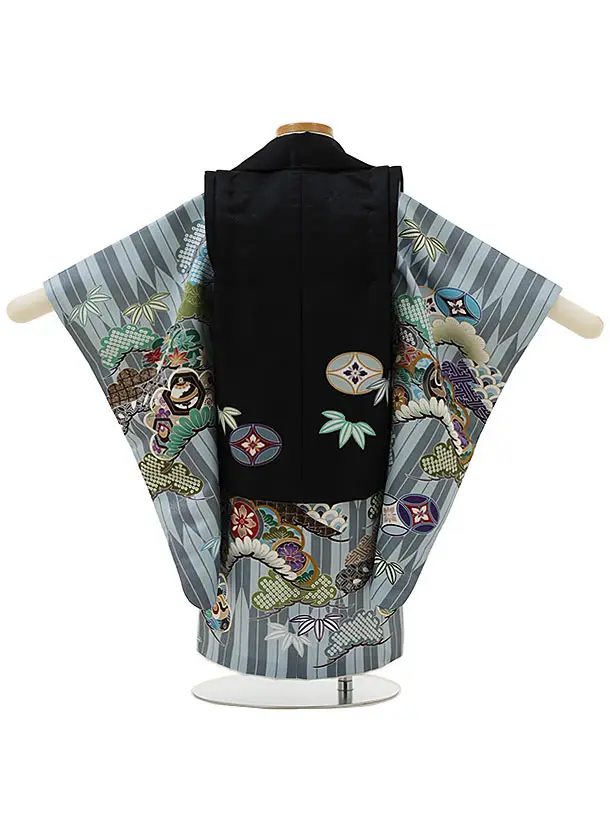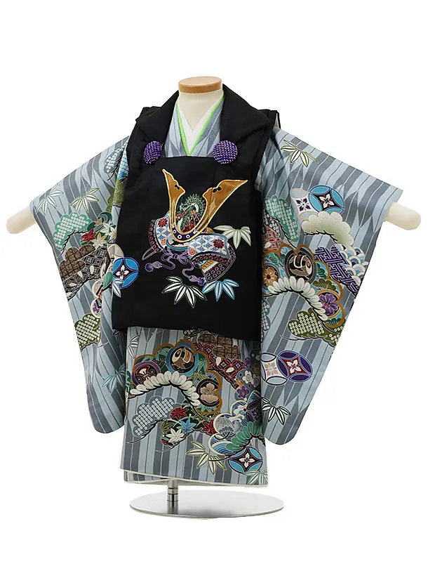 七五三レンタル(2歳男児被布)2972黒兜×グレー矢柄吉祥文様