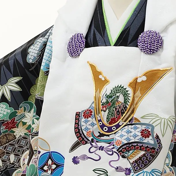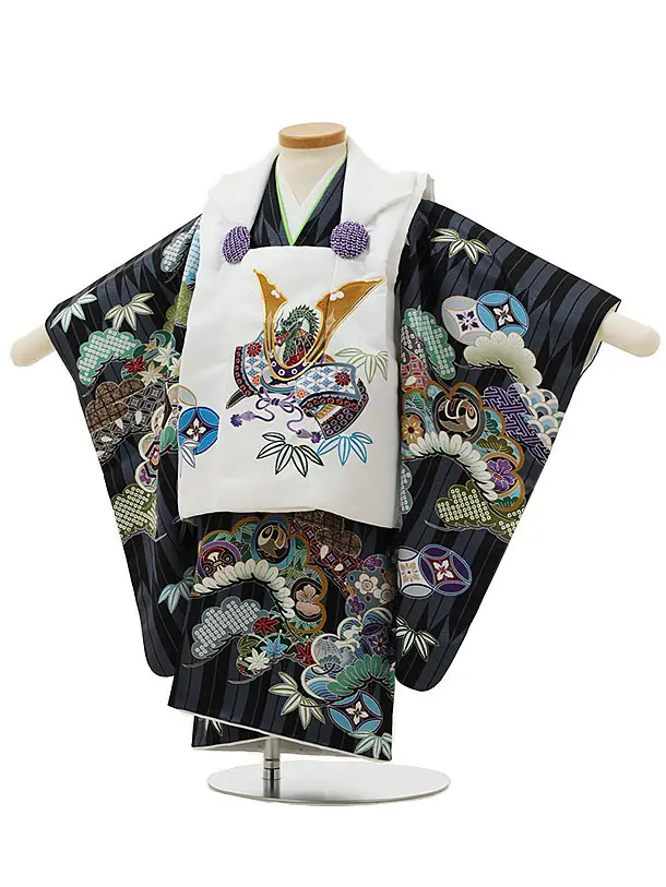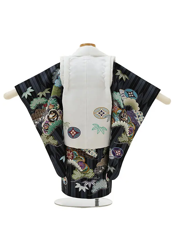 七五三レンタル(2歳男児被布)2976白兜×黒矢柄吉祥文様