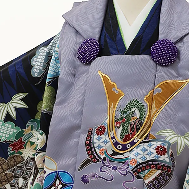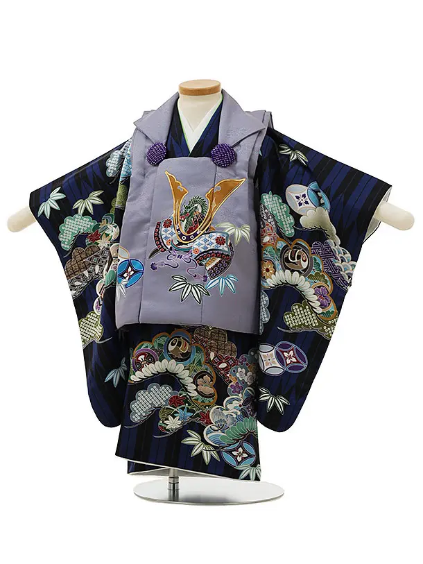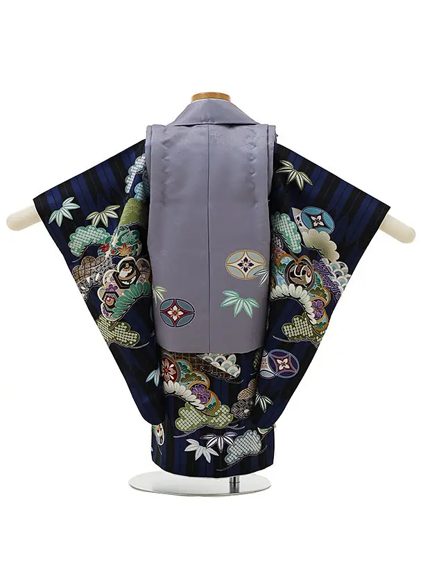 七五三レンタル(2歳男児被布)2978パープルグレー×ブルー矢柄吉祥文様