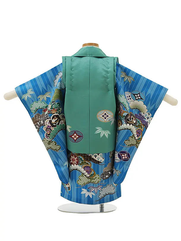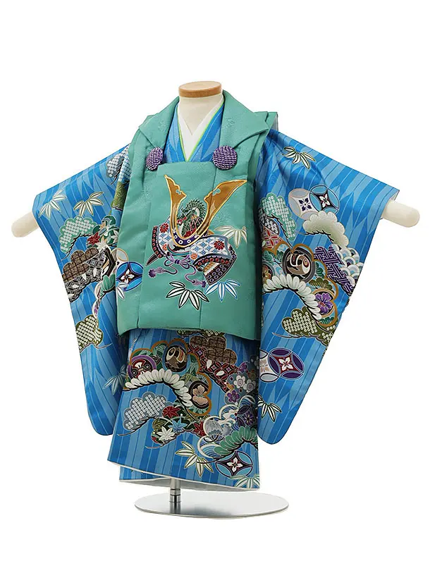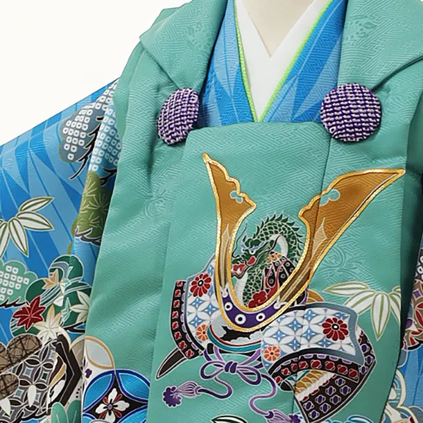 七五三レンタル(2歳男児被布)2981グリーン兜×水色矢柄吉祥文様