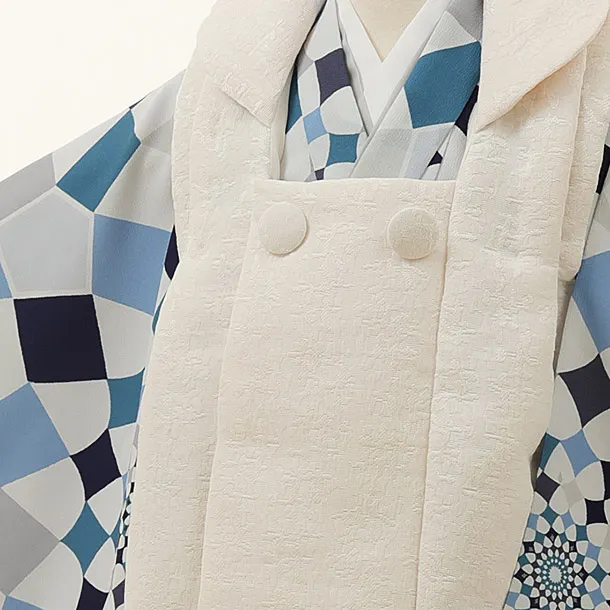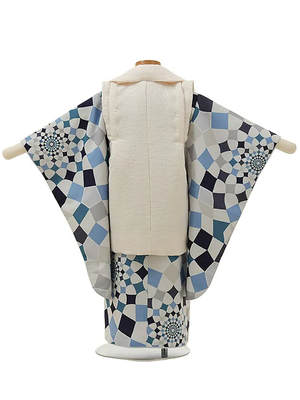 七五三レンタル(3歳男児被布)2985クリーム×グレージュブルー万華鏡