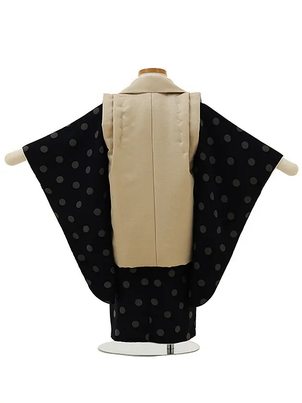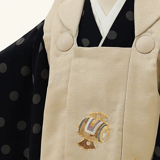 七五三レンタル(2歳男児被布)2989ベージュ小槌刺繍×ネイビードット