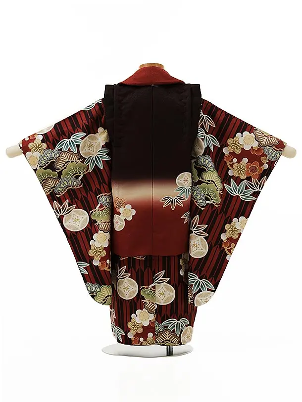 七五三(3歳男児被布)2999 黒茶ぼかし鷹×茶矢柄松竹梅