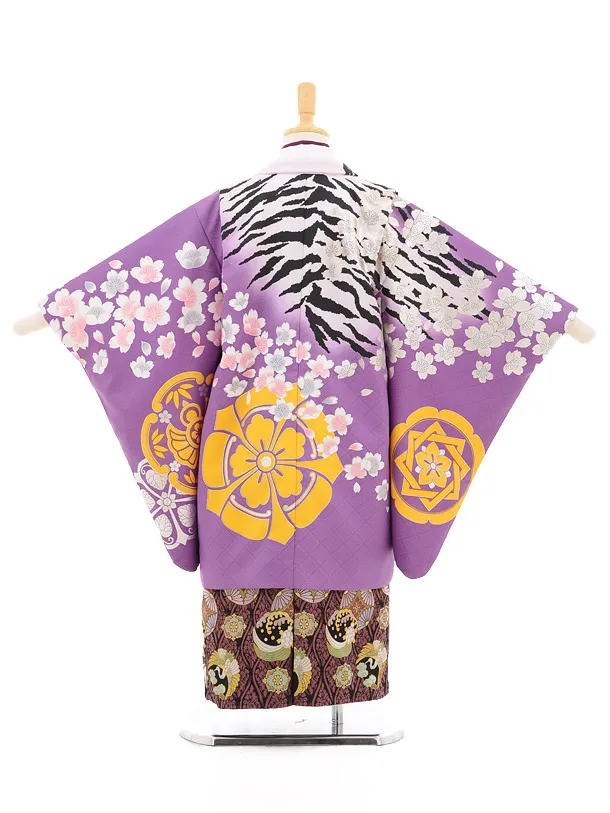 かんたん753レンタル(5歳男の子袴)5118花わらべ虎に桜×ワインレッド袴