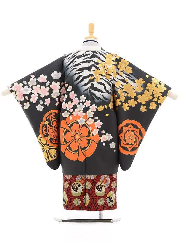 かんたん753レンタル(5歳男の子袴)5120花わらべ虎に桜×赤地古典柄袴