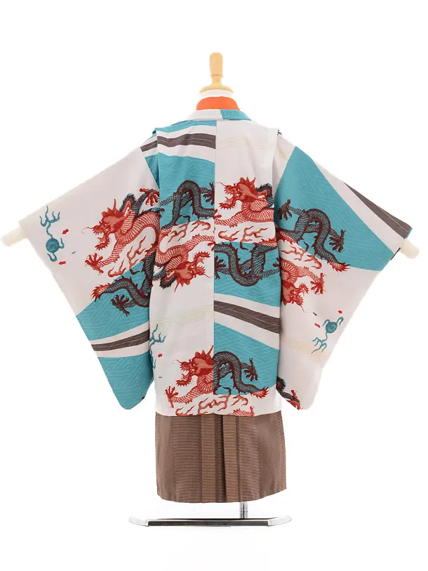 かんたん753(5歳男の子袴)5121モダンアンテナグリーン×茶色地縞袴