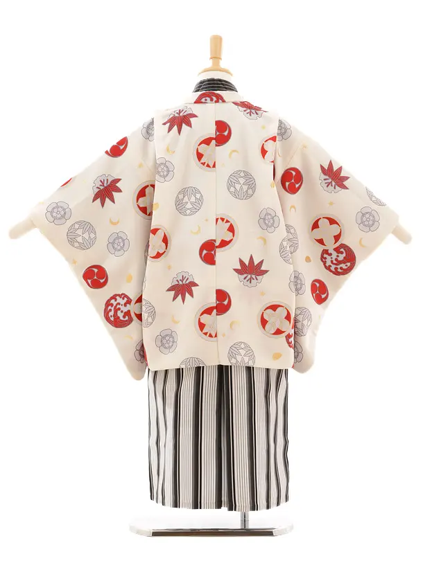 七五三レンタル(5男袴)5140白 黒×白地黒縞袴