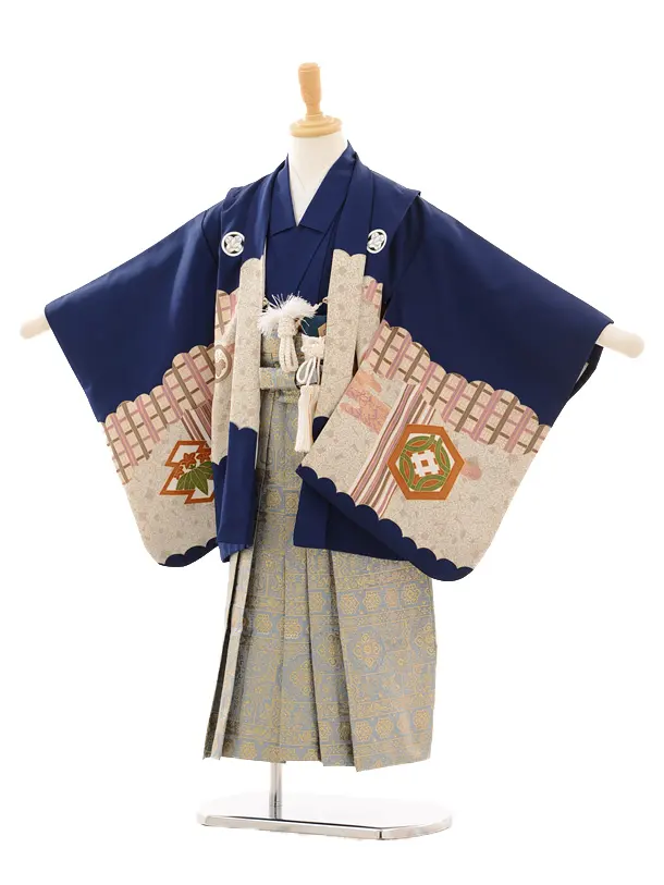 七五三レンタル(5男袴)5141青 水色×グレー袴