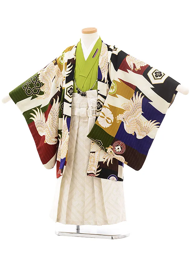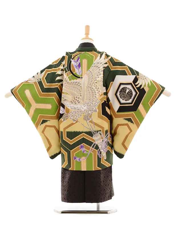 七五三レンタル(5歳男の子袴)5148JAPANSTYLE鷹/緑×黒地ラメ柄袴