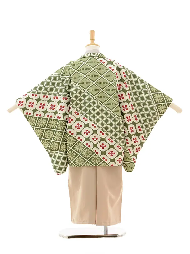かんたん七五三レンタル(5歳男の子袴)5153鶴菱グリーン×ベージュ袴