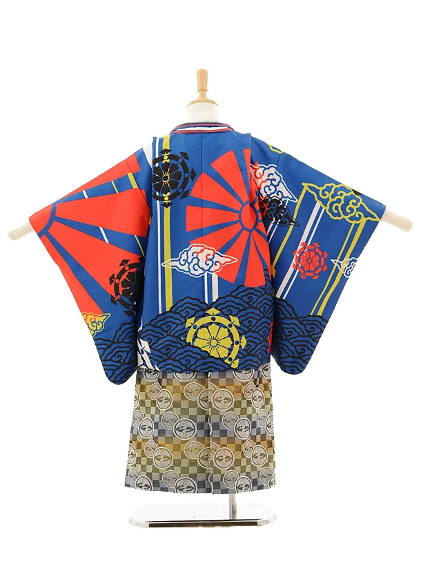 かんたん七五三レンタル(5歳男の子袴)5155青海青×カラフル和柄袴