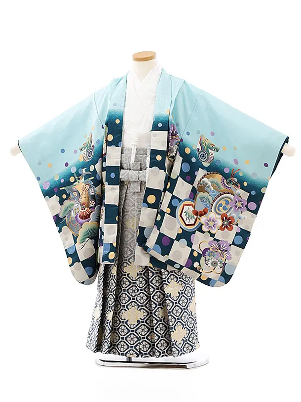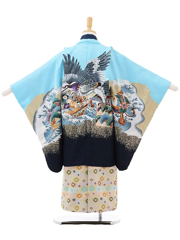 七五三レンタル(5歳男の子袴)5161水色鷹に宝舟×白糸袴